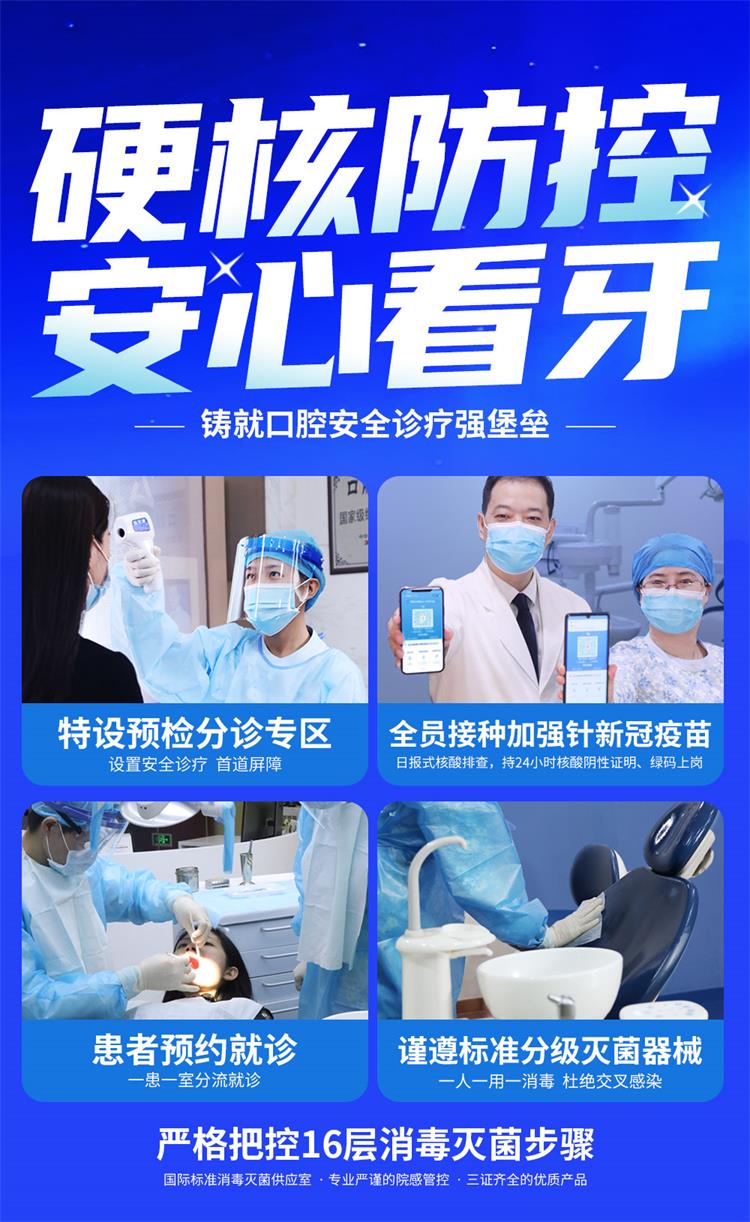 近日广州疫情形势严峻,为保障广大市民的人身安全,穗华口腔医院遵循实施疫情防控程序,层层把控,全方位硬核防护,采取全员日报式排查、24小时绿码上岗制,并谨遵16层消毒灭菌步骤,全力保障市民安心看牙!